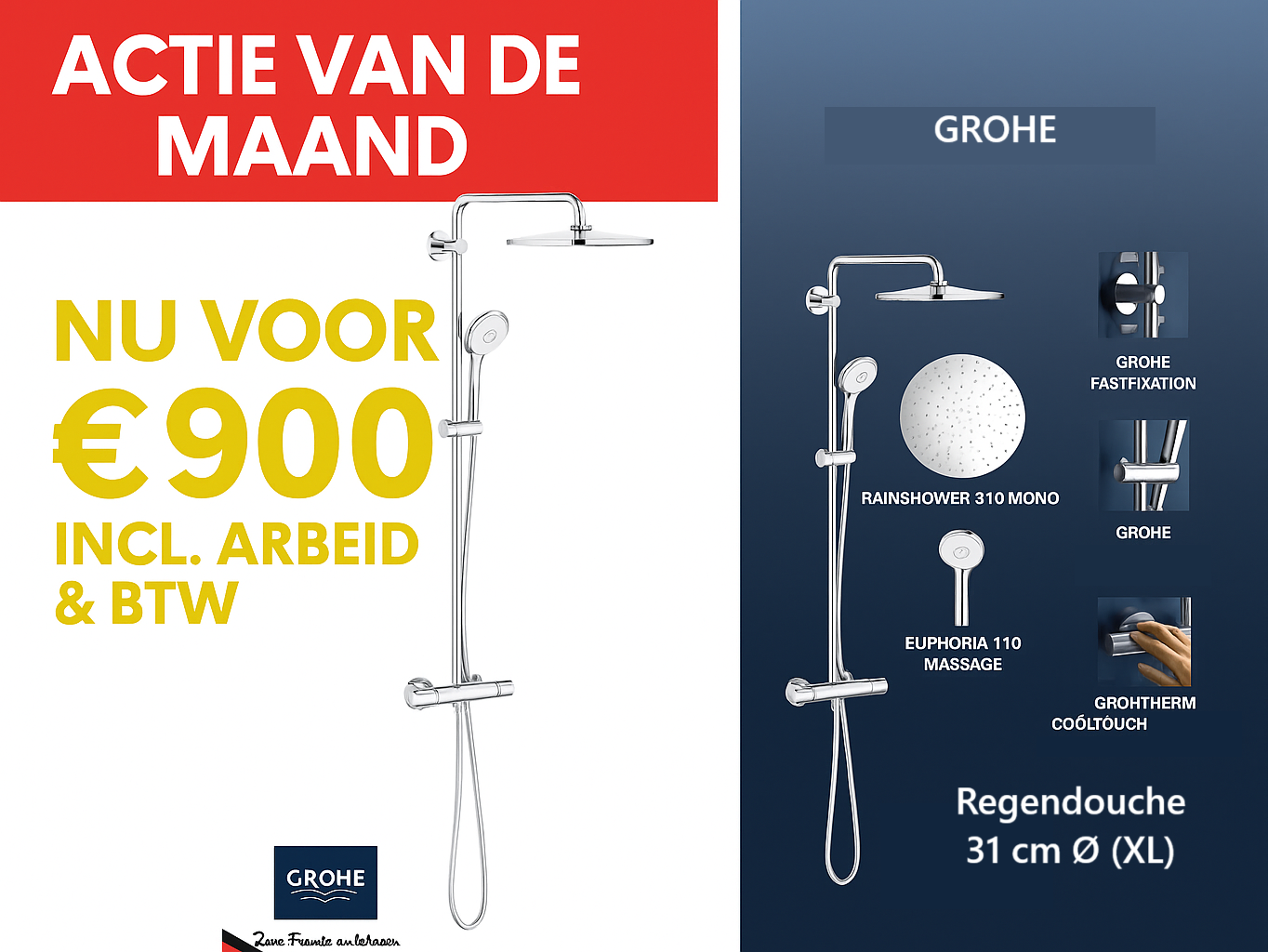 het plaatsen van een GROHE regendouche